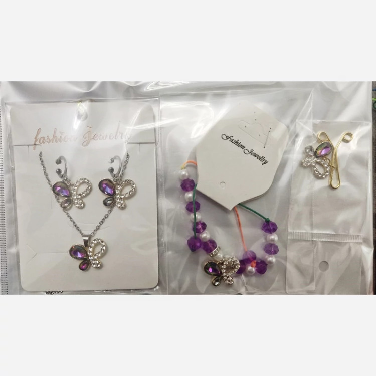 ست گردنبند گوشواره دستبند و گیره روسری طرح پروانه هولوگرامی