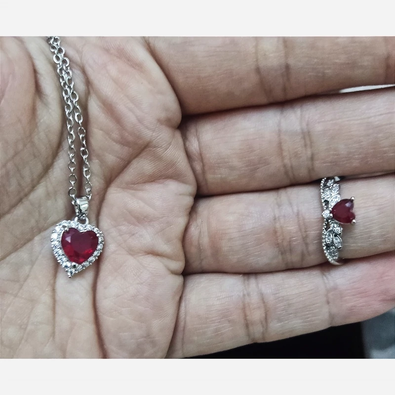 ست گردنبند و انگشتر سواروسکی طرح قلب قرمز
